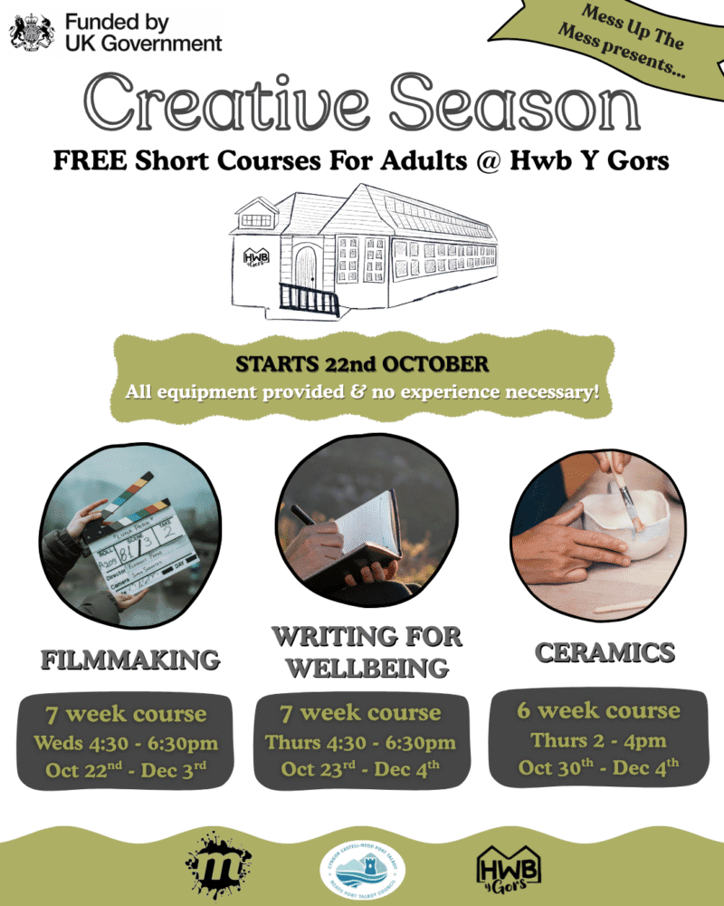 Mess up the Mess are pleased to share a new community project, providing a programme of arts and creative workshops for the whole community of Cwmgors and surrounding villages, based at new Hwb y Gors and funded by UK government through the UK Shared Prosperity Fund.
